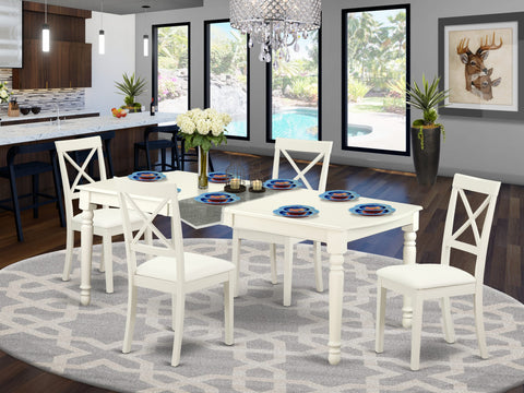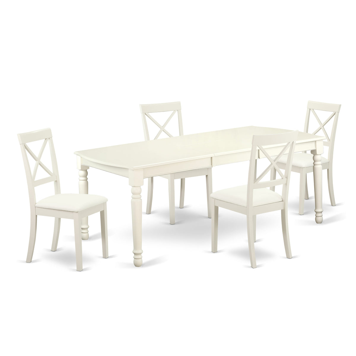 DOBO5-CF5-DD Elegant 5-Piece Dining Set, Expandable Rectangular Table & 4 Faux Leather Seats, 42x78 Linen White