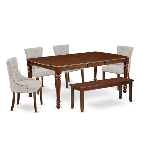 DOFR6-AG3-85 6-Piece Dining Ensemble, Rectangular Table with Leaf, Parson Chairs, and Bench Set