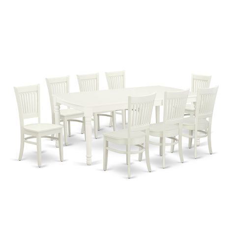 DOVA9-9HL-K Elegant Dining Ensemble 9-Piece Set with Expanding Table & 8 Chairs, Linen White Finish