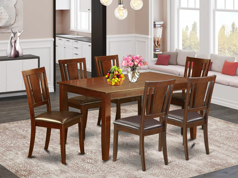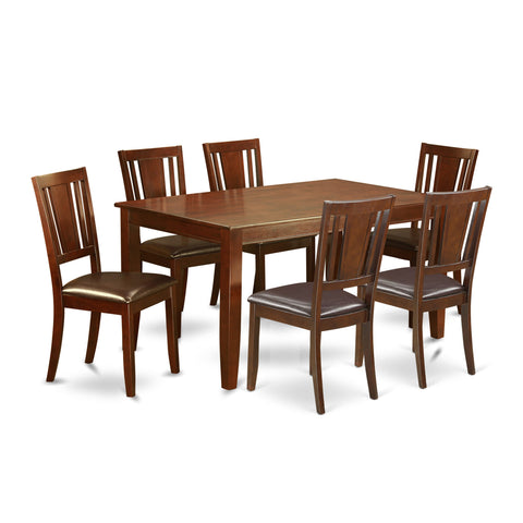 DUDL7-8PQ-XU 7-Piece Dining Set in Mahogany Rectangle Table & 6 Chairs with Faux Leather 36x60