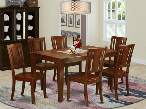 DUDL7-UDV-S Classic 7-Piece Dining Ensemble with Rectangular Table and Six Chairs, Mahogany Finish