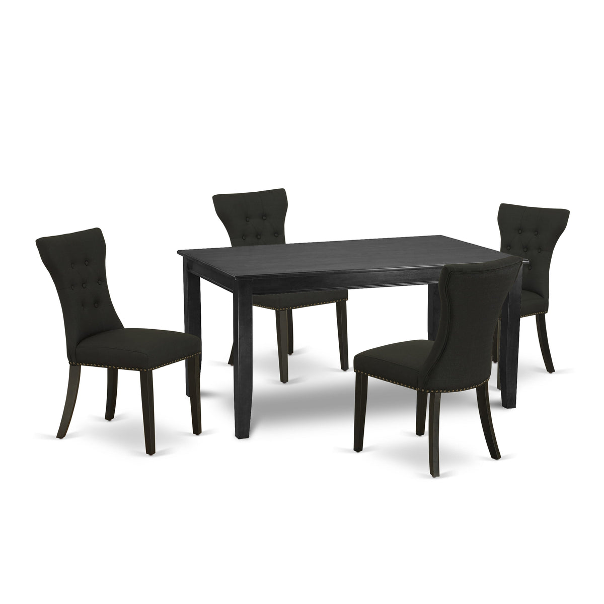 This kitchen table set includes 4 fantastic parson chairs and an excellent 4 legs dining table. The modern dining room set delivers a Black hardwood modern dining table and body and a wonderful Black parson dining chairs seat and high back that bring elegance to your living area and improve the charm of your great dining room. The superior quality of our gorgeous chairs helps our attractive customers to get relaxation and feel free when getting their meal. This living room table built from prime quality rubber wood which can bear the weight of 300 Lbs. Our Kitchen Parson Chairs have a wooden frame with a luxury seat of superior quality foam which is covered with Linen Fabric that delivers you relax with family or friends. This listing has a premium color of Black finish for kitchen dining table and Black finish of parson dining chairs. Our gorgeous premium colors boost the beauty of your dining-room and give a luxurious appearance to your living area or dining area. East West Furniture always crafted from modern furniture along with easy assembling parts. We try to keep our furniture parts modern as well as simple. Our high-class dining table set is perfect for your wonderful dining area as well as the kitchen. You can use it for casual home parties. Keep enjoying East West modern furniture!