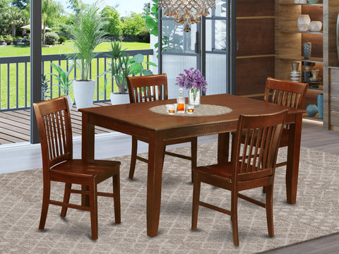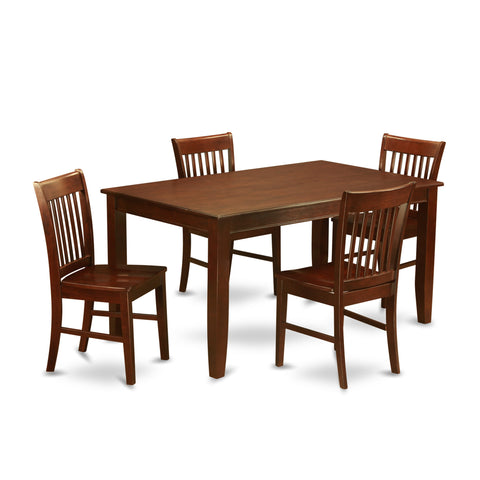 DUNO5-ERF-I Exquisite Five-Piece Dining Ensemble with Rectangular Table & 4 Elegantly Designed Chairs, Mahogany Finish, 36x60 Inch