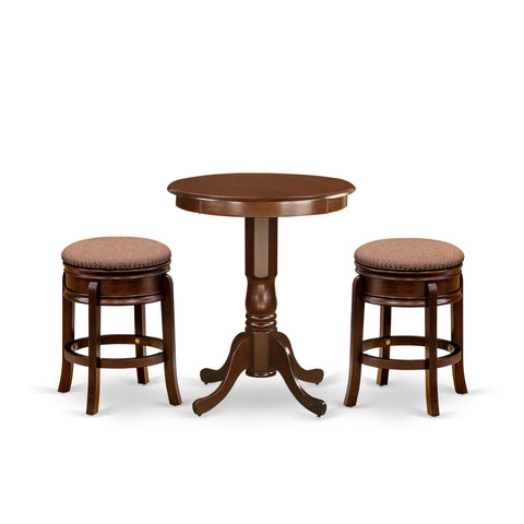 EDAM3-Q8B-BX 3 Piece Elevated Dining Ensemble with Round Table & No-Back Stools, Classic Mahogany