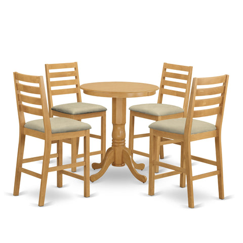 ECDCF5-Q80-I 5-Piece Oak Counter Height Dining Set with Round Table and 4 Linen Chairs