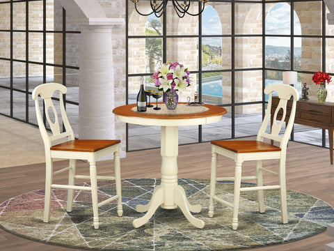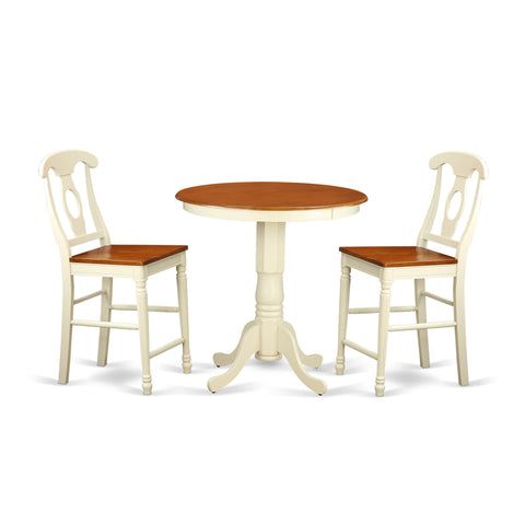 EDKE3-INJ-S 3-Piece Dining Set for Compact Areas Featuring Round Table and 2 Chairs in Buttermilk & Cherry