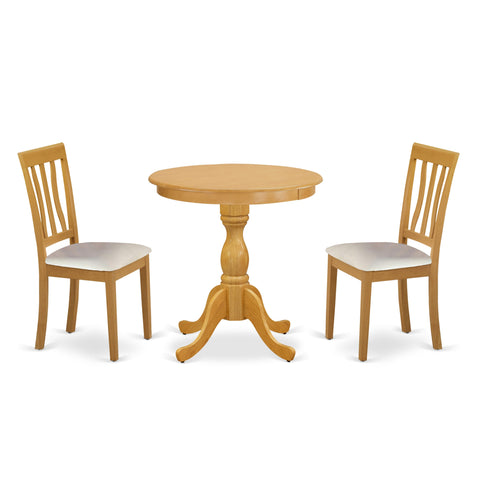 ESAN3-ZYR-KH Round Rustic Dining Set 3-Piece Table and 2 Faux Leather Chairs - Oak Finish