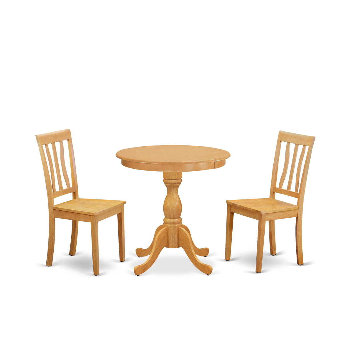 This kitchen dining room set includes 2 mid century wooden chairs and 1 wood dining table. This wooden dining table has a Round table top and Pedestal leg. The solid wood frame and back ensure that these wooden chairs sturdiness and offers decent support to your back, in addition to their ideal size these urban style chairs, are trouble free to assemble and easy to rearrange. These simple but charming mid century wooden chairs will add ambiance and style to your dining room. Give your home a pop of chic style with this must have dinette room set. This eye-catching dining table set design will liven up any timeless appeal with a contemporary twist on a classic design. Just by switching out your kitchen chairs and kitchen table, you can effortlessly refresh your dining space. This modern dining table set is very easy to assemble. You only need around 1 hour to build this kitchen table set. This modern dining set comes with all the necessary hardware to assemble this kitchen dining room set. These dining chairs are easy to carry or move around. Enjoy with East West Furniture!