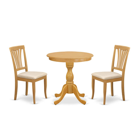 This dining room table set includes 2 mid century wooden chairs and 1 wood dining table. This round dining table has a round tabletop and Pedestal legs. The solid wood frame and back ensure that these wooden chairs sturdiness and offers decent support to your back, in addition to their ideal size these urban style chairs are trouble free to assemble and easy to rearrange. These simple but charming wood chairs will add ambiance and style to your dining room. Give your home a pop of chic style with this must have modern dining table set. A contemporary twist on a classic design, this eye-catching dining room table set design will liven up any timeless appeal. Just by switching out your dining chairs and modern round dining table, you can effortlessly refresh your dining space. This dining room set is very easy to assemble. You only need around 1 hour to build this dining table set. This dinette set comes with all the necessary hardware to assemble this kitchen table set. These modern wood chairs are easy to carry or move around. Enjoy with East West Furniture!