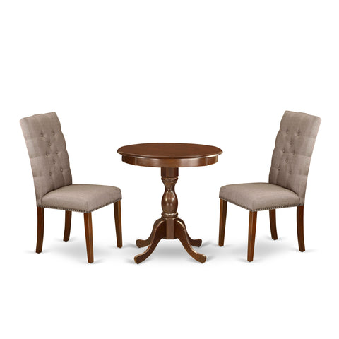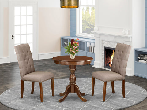ESEL3-SEQ-PF Cozy 3 Piece Space-Saving Dining Set with Round Table and Khaki Chairs, Mahogany Finish
