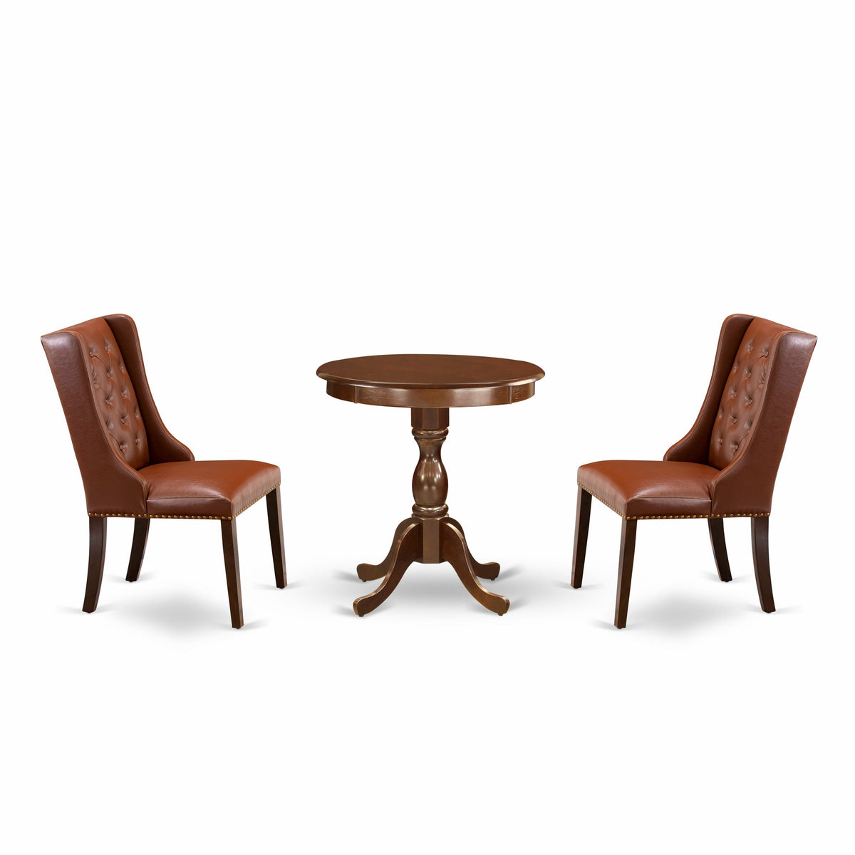 Its modern dining set includes 2 mid century padded parson chairs and 1 wood dining table. This dining table has a round table top and stunning legs. The solid wood shape and soft padded back ensure that these kitchen chairs sturdiness and offers decent support to your back, in addition to their ideal size these Urban Style chairs are trouble free to put together and easy to rearrange. These simple but charming Upholstered Dining Chairs will add ambiance and style to your dining room. Provide your home with a pop of chic style with this must have modern dining set. A contemporary twist on a classic design, this eye-catching dining room set design will liven up any timeless appeal. Just by switching out your chairs and modern round dining table, you can effortlessly refresh your dining space. This dinette set is very easy to build. You only need around 1 hour to build this modern dining table set. This kitchen table set comes with all the necessary hardware to put together this dining room set. These parson chairs are easy to carry or move around. Enjoy with East west Furniture!