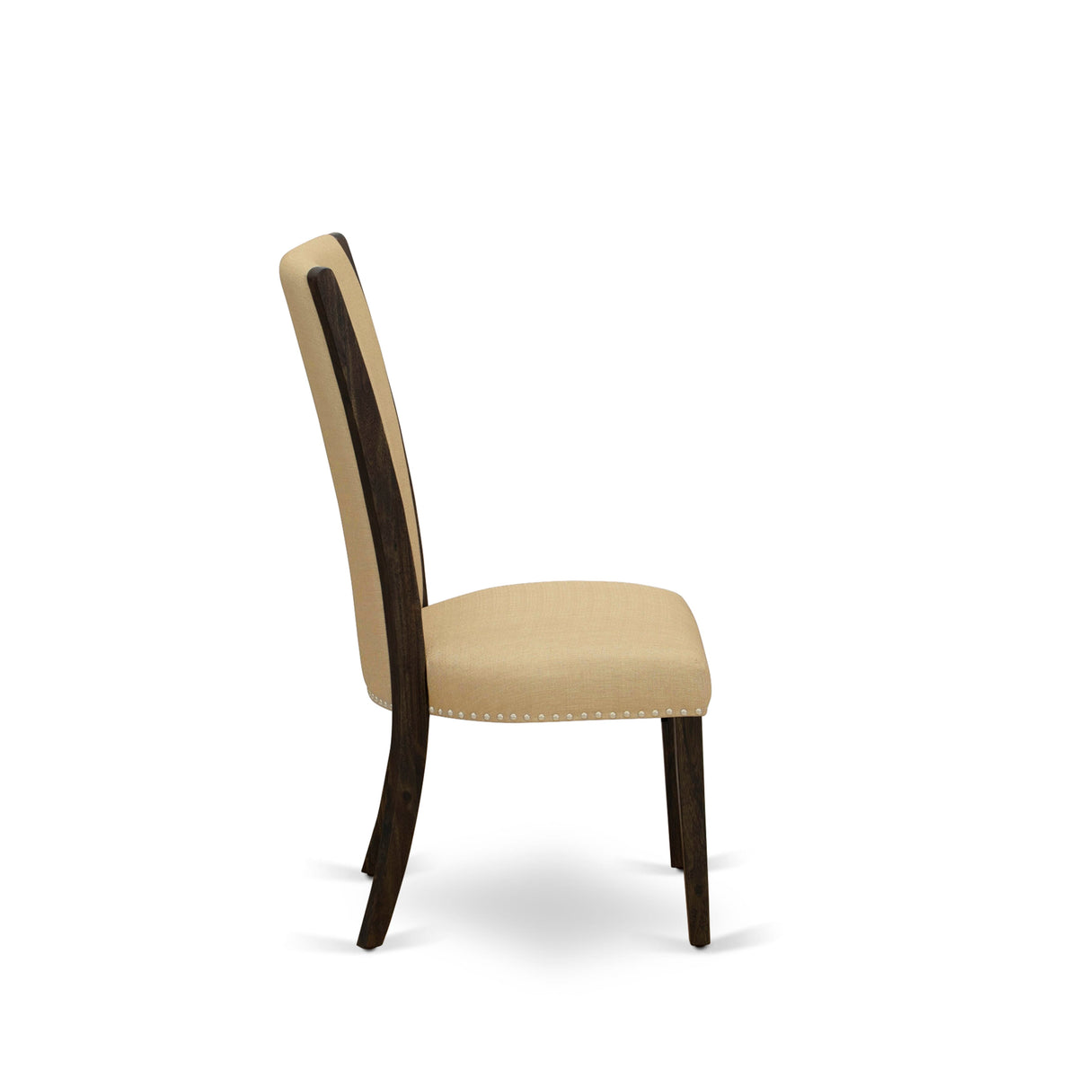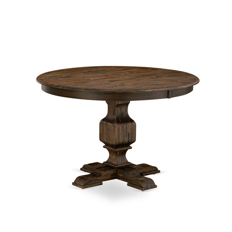 F3VE5-328 Charming 5-Piece Set Round Pedestal Dining Table and 4 Stylish Brown Upholstery Chairs, 48 Distressed Jacobean