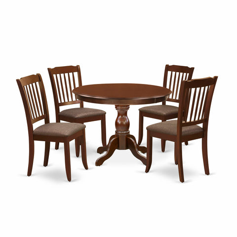 HBDA5-RAZ-W Elegant 5 Piece Dining Set with Round Table and 4 Linen Upholstered Chairs, 42x42 Satin Finish