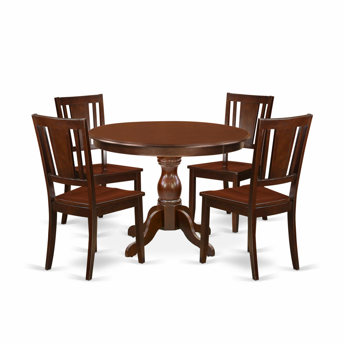 HBDU5-J0T-9 Elegant 5-Piece Mahogany Dining Ensemble with Pedestal Table & 4 Chairs, 42 Square