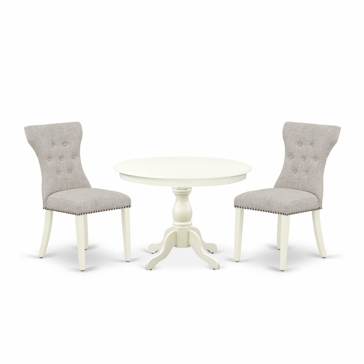 HBGA3-121-AH Elegant 3-Piece Dining Set Round Table & Chic Linen Upholstered Chairs in White