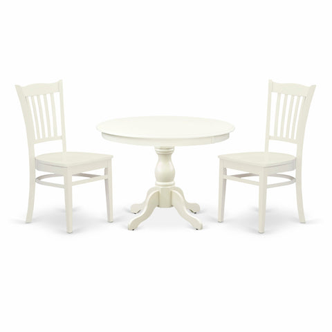 HBGR3-K2C-R Compact Dining Ensemble 3 Piece Round Table Set for Cozy Kitchens w/ 2 Chairs, 42 Linen White