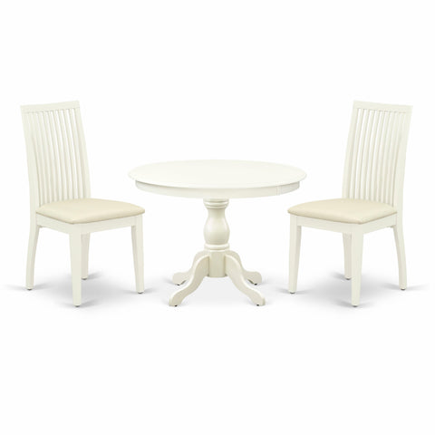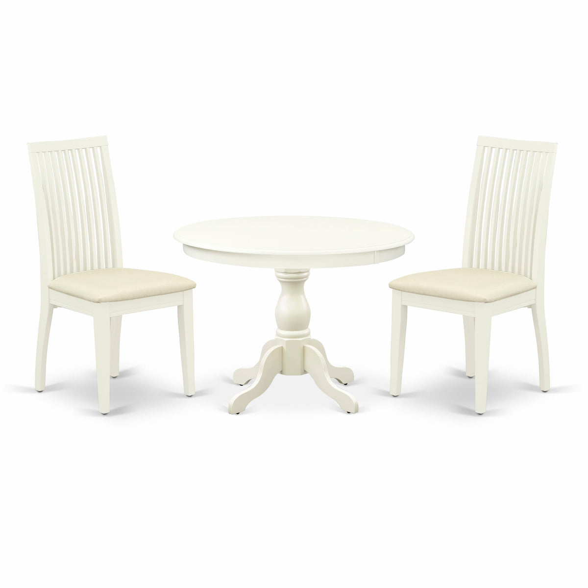 Cozy Dining Experience HBIP3-3NF-4 Compact 3-Piece Set Round Table with Pedestal and Upholstered Chairs, Ideal for Small Spaces, 42 Linen White