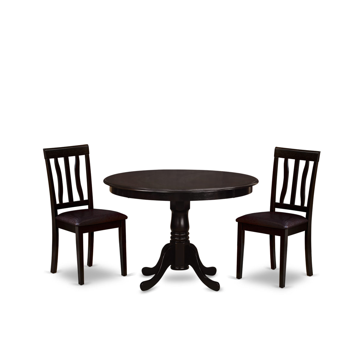 Charming HLAN3-GLU-8V Ensemble Round Table and Pair of Dining Chairs in Elegant Cappuccino Finish