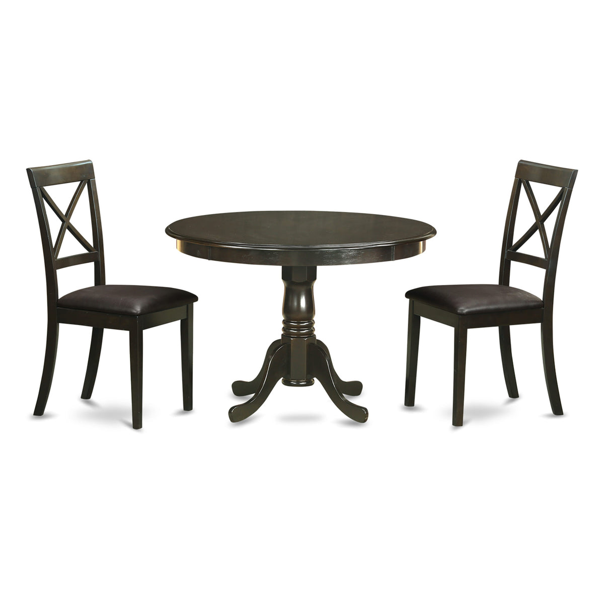 HLBO3-OTL-IH 3-Piece Set for Compact Dining Areas Featuring a Pedestal Round Table and Two Upholstered Chairs in Faux Leather, 42x42 Cappuccino