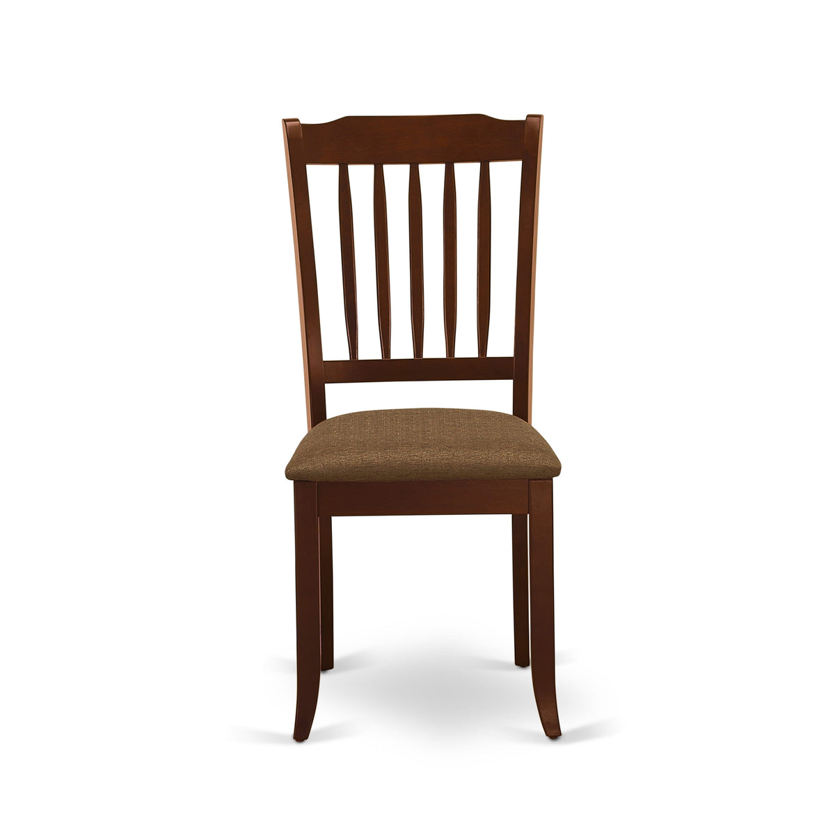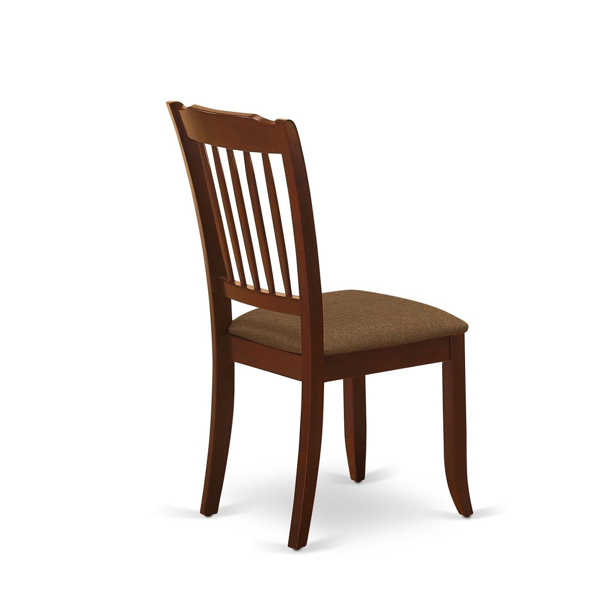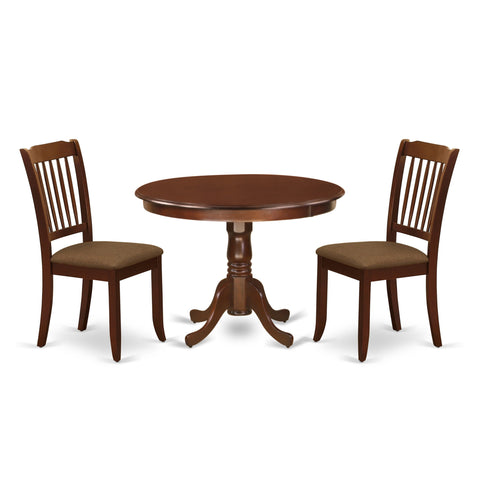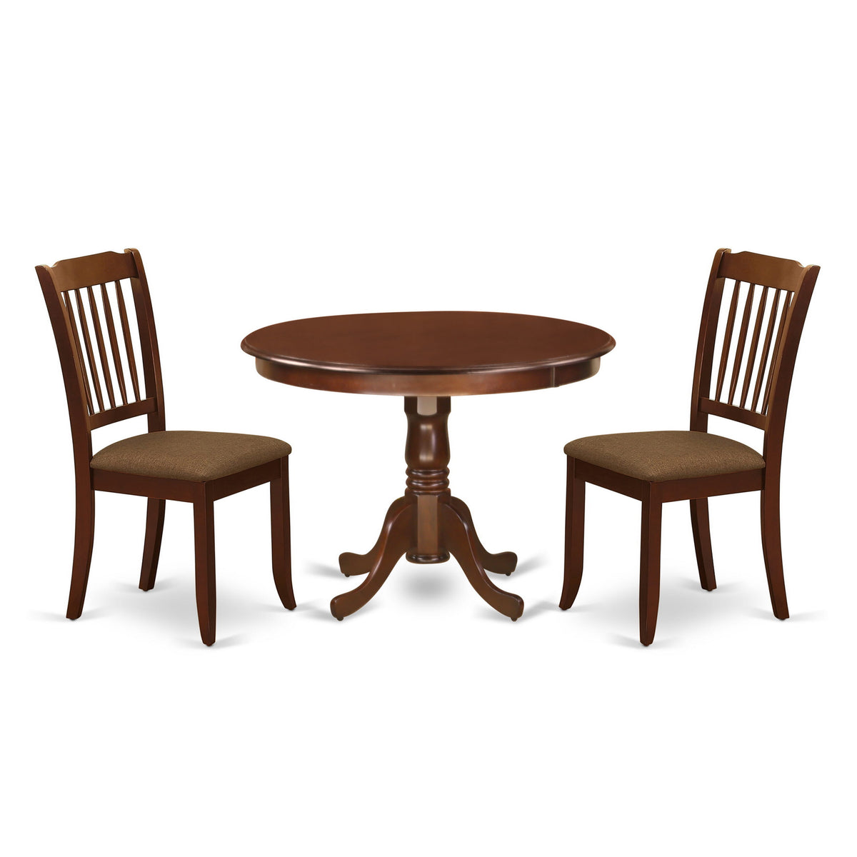East-West furniture 3-piece dining room set includes 2 Linen Fabric dining chairs and a round fantastic dining room table to enhance the elegance of your dining room. This round dining table has a round shape with gorgeous four wooden pedestal legs. Round dining table and dining chairs painted with Mahogany high-quality color. This round dining room table and wooden dining room chairs are created of good quality Asian Hardwood that is strong and long-lasting. It gives a standard look. The dinette set is well developed and famous for modern homes. You will love to bring our beautiful dining table set at home. You can use our breakfast table and Kitchen dining chair in the dining room as well as in the kitchen areas. Its dinner table is adaptable and perfect for dining. Dining room chairs have a high slatted back with Mahogany Linen Fabric seats and beautiful wooden legs. Mid century dining chairs are designed for quick maintenance and daily use, and have a Mahogany finish. It makes you all meals like celebrations. We can move dining room chairs under the modern dining table after doing our dinner to get more space in the dining area. Linen Fabric dining chairs are comfortable to have dinner, lunch, or breakfast with your family, and friends, and get to gathers or parties in a fashionable dinner environment. It increases the magnificence of your dining room. You can assemble a modern kitchen table and wood chairs easily according to the given condition if you have any confusion feel free to contact us. Buy our products confidentially, because our priority is to keep customers happy!