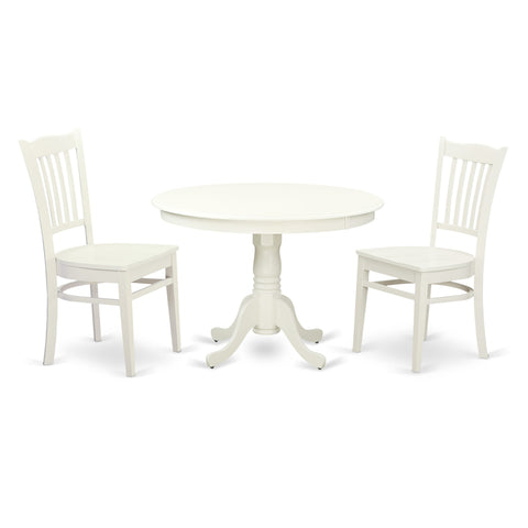 HLGR3-8NX-9 3 Piece Compact Dining Ensemble with Pedestal Table and Two Linen Chairs in White, 42