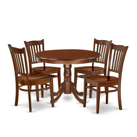 HLGR5-JFV-P 5-Piece Dining Set with Pedestal Table and 4 Chairs, Mahogany Finish, 42 Round