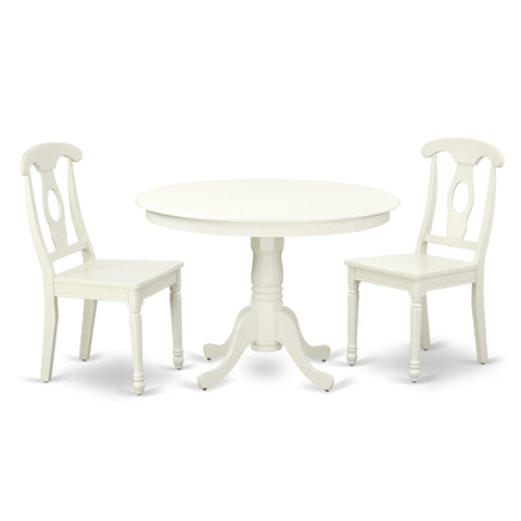 HLKE3-SNP-C Enchanting 3-Piece Dining Set with Elegantly Crafted Round Table and Two Comfortable Seating, 42x42 Inch, Bright Linen Finish