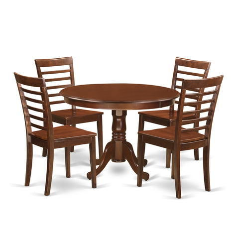 HLML5-LYL-T 5-Piece Dining Ensemble Round Pedestal Table & 4 Chairs, 42x42 Inch, in Luxe Finish