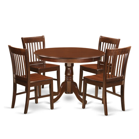 HLNO5-7V1-A Stylish 42x42 Inch Dining Ensemble 5-Piece Set for 4 with Round Table & 4 Chairs, Mahogany Finish