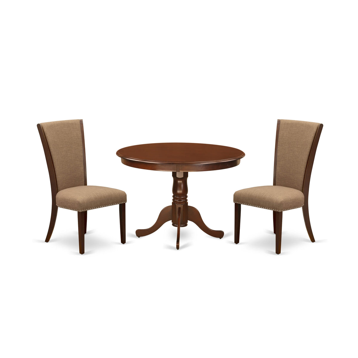 HLVE3-47J-CX Elegant 3 Piece Dining Ensemble with Pedestal Table & 2 Sable Linen Chairs, 42 Linen White