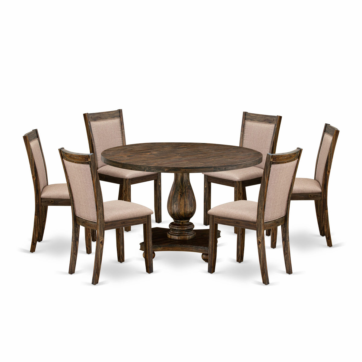 I2MZ7-TU5 Contemporary 7-Piece Dining Set with Pedestal Table and Linen Seats, Distressed Wood Finish