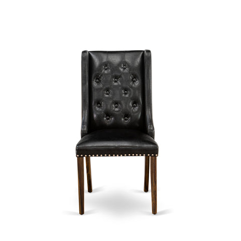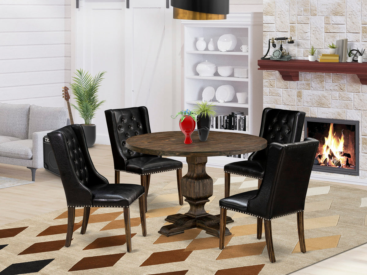 I3FO5-RIW 5-Piece Dining Collection Round Table with Pedestal & Black Leather Style Chairs, Distressed Finish