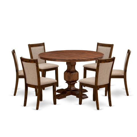 This 7-Piece dinette set includes a wood round dining table and 6 padded chairs for dining room which can fully accommodate your family. Asian wood material dinner table set is sturdy and durable. The set of 6 wood chairs in linen fabric foam padded seat will not feel tired even after a long time sitting. The seat and back cushion is made of high-quality material of linen fabric for the backrest because of the upholstered back. This attractive dinner table set with a solid wood frame will enhance the appeal of any dining area. Upgrade your home decor with our modern style mid century modern dining set. Antique Walnut finish adds a unique attraction to any kitchen room while the wooden legs of both mid century modern chairs and wooden tables will surely help you to enhance the solidness and classic feel. The classy design in the premium finish is perfect to match any dining room. Change your interior decor with our antique design round dining table set. The round dining table set adds a touch of magnificence to the kitchen that you and your family will surely enjoy. The smooth surface dining set is easy to be clean with a damp cloth to get hassle-free maintenance. Assembly needs not much time and will be easy to assemble if you will follow the step-by-step instructions of the manual.