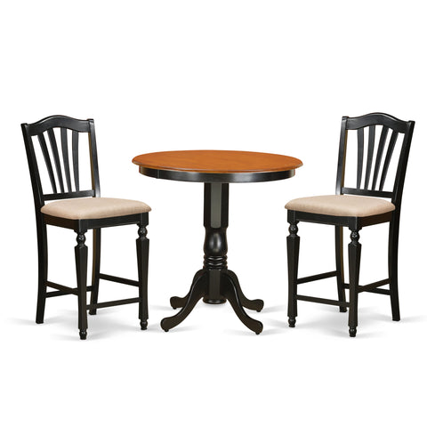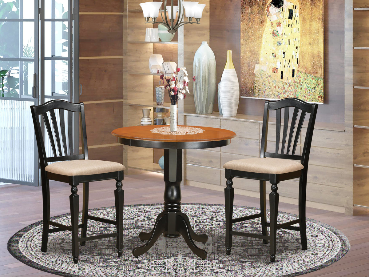 JACH3-AUV-J Stylish Trio Dining Ensemble with Round Table and 2 Linen Chairs, 36x36, Black & Cherry