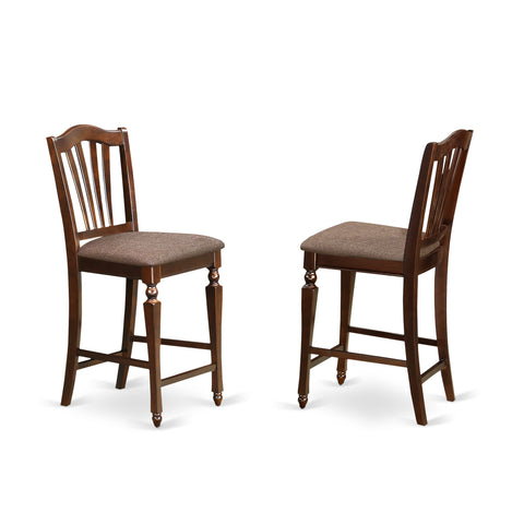 JACH3-N47-G 3-Piece Round High Dining Set with Pedestal Table and 2 Upholstered Chairs, Elegant Mahogany 36x36