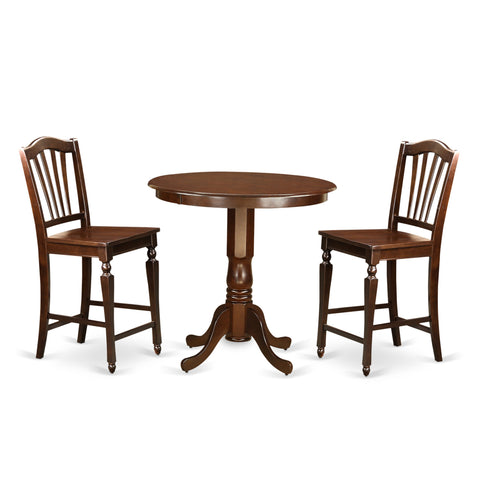 JACH3-LTZ-U 3-Piece Mahogany Counter Height Dining Set with Round Table and 2 Chairs, 36