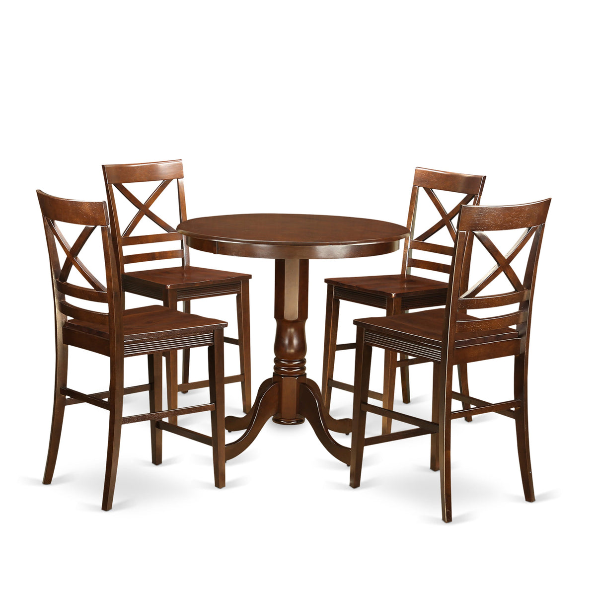 Dining Room Ensemble set JAQU5-S3O-E Circular Table with Stand and Four Charis, 36x36 Inch, Mahogany Finish