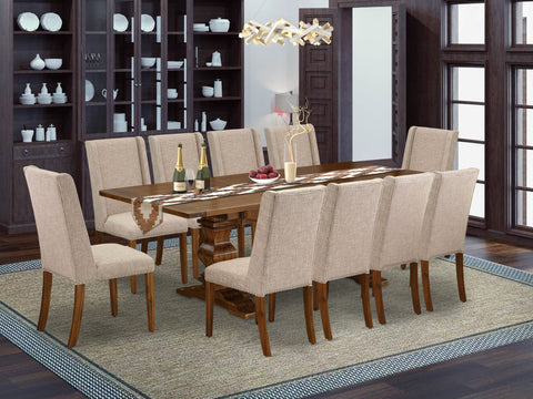 LAFL1L-PV-6I Luxurious 11-Piece Dining Ensemble with Rectangular Table, Expansive Leaf & Plush Linen Seating in Walnut