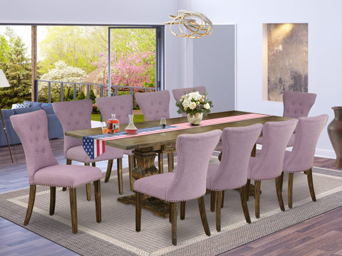 LAGA1H Elegant 11-Piece Dining Set with Butterfly Leaf and Dahlia Chairs, Jacobean Finish, 42x92 Inch