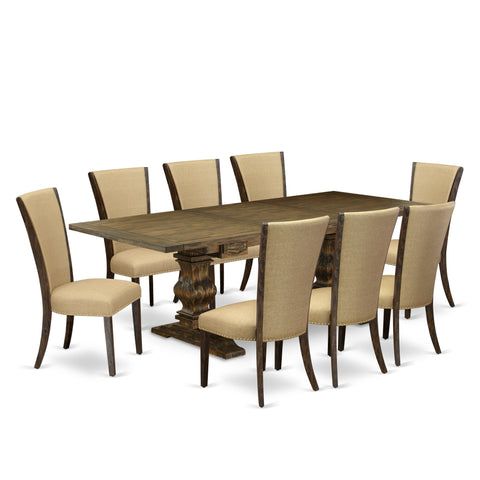Take your kitchen or dining area to the next level with our advanced style rectangle extendable leaf table. The dining table features a classic design with a painted, fresh Distressed Jacobean finish for a simple, yet stylish mid-century dinette table. The kitchen table incorporates a 24-inch extendable leaf that can be easily expanded to provide additional area for extra food trays and drinks on certain occasions or great parties. Crafted from Asian tropical hardwood also known as rubberwood, this dinette table set is sturdy and durable. This high-class dining table is optimal for your wonderful dining room as well as the kitchen. Our rectangular kitchen table is an excellent complement to your home! Provide your guests with the best seat in the house.Bring these comfy parson chairs in your dining room which add a timeless elegance to your dining room and are easy to incorporate into just about any existing style – or future decorating plan! Tall back, upholstery, high-density foam padding, solid hardwood frame construction, and linen upholstery make these parson chairs comfortable, durable and attractive. The curved design of the chair with Brown color fabric and Distressed Jacobean finish frame has made the chair modern and elegant. Whether you use this dinette chair in your dining room, kitchen, living room or basement, it is an easy to assemble and stylish answer to your seating needs.