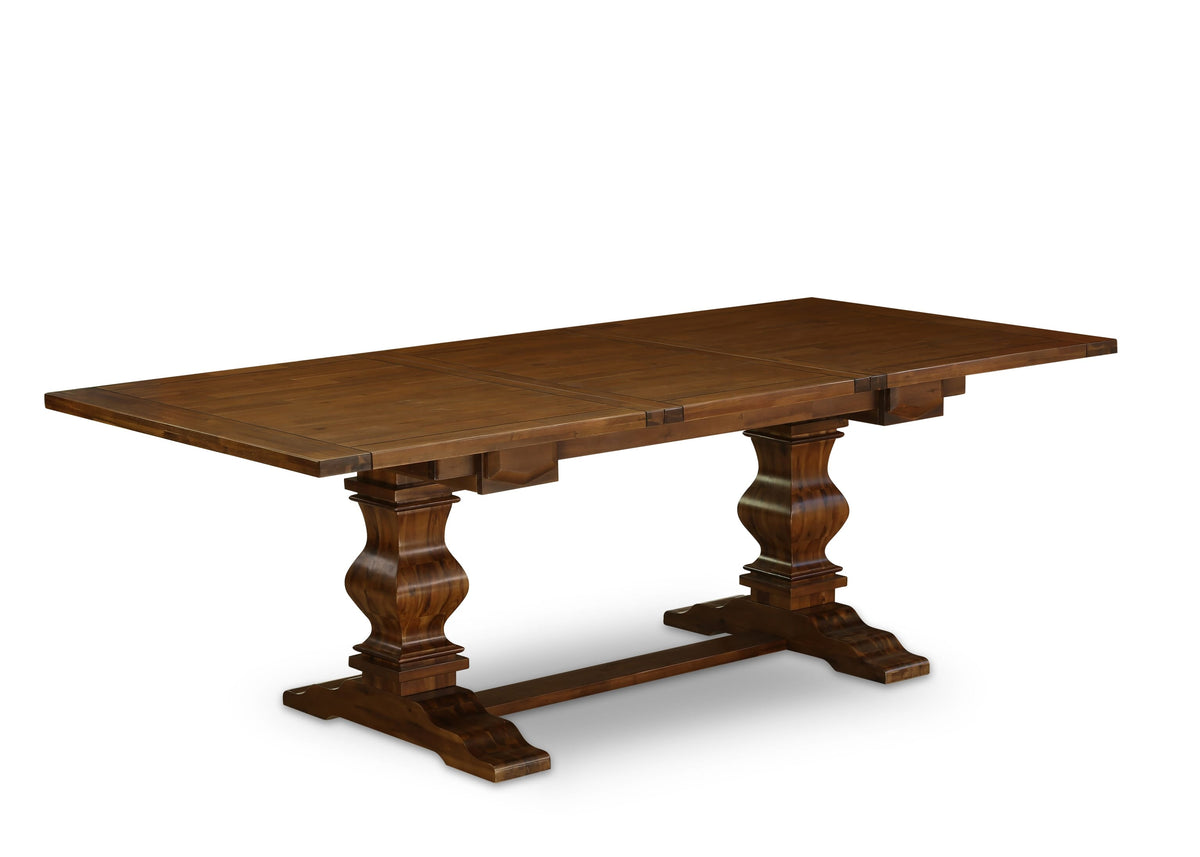 We are delighted to present our meticulously crafted 5-piece Dining Table Set, comprising a dining table and 4 stackable dining chairs. This exquisite ensemble is designed to elevate your dining experience and impress your esteemed guests. The dining table features an elegant blend of an Antique Walnut tabletop supported by pedestal legs, while the contemporary dining chairs showcase Light Tan Linen Fabric seats complemented by a refined Antique Walnut finish. Constructed from robust Rubberwood and durable Acacia wood, this set embodies enduring sophistication and superior craftsmanship. Our attention to detail is evident in the luxurious cushioned seating of the dining chairs, expertly upholstered with premium Linen Fabric for both comfort and longevity. Engineered with high-resilience foam padding, these chairs ensure unparalleled comfort, enhancing the dining ambiance for you and your distinguished guests.