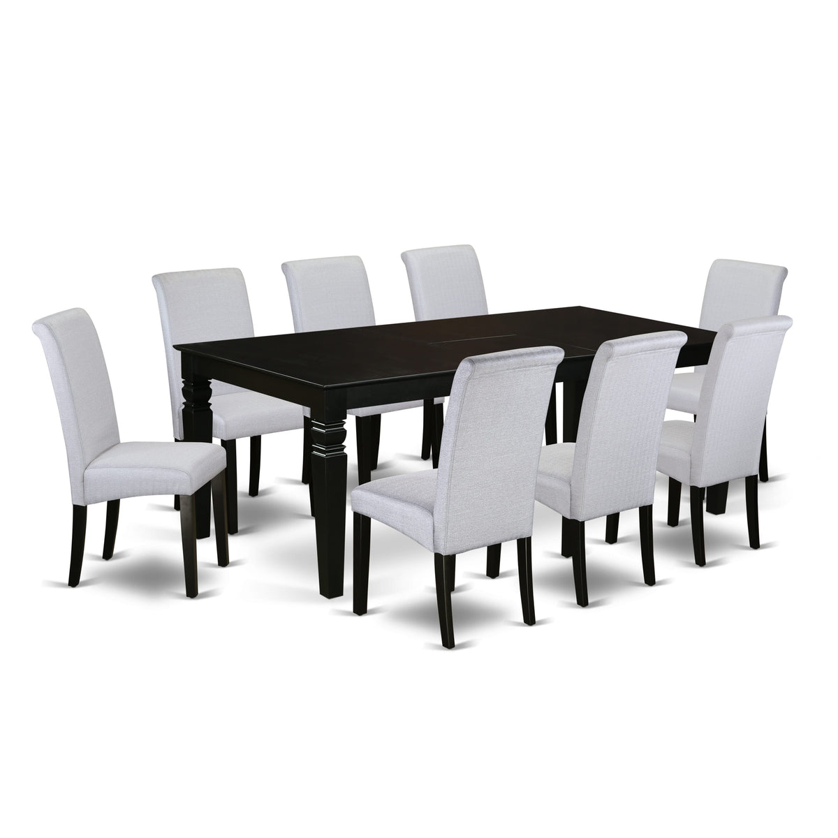 LGBA9-C6W-EU 9-Piece Elegant Dining Ensemble with Butterfly Leaf Table & 8 Gray Parsons Chairs, 42x84, Black Enchantment