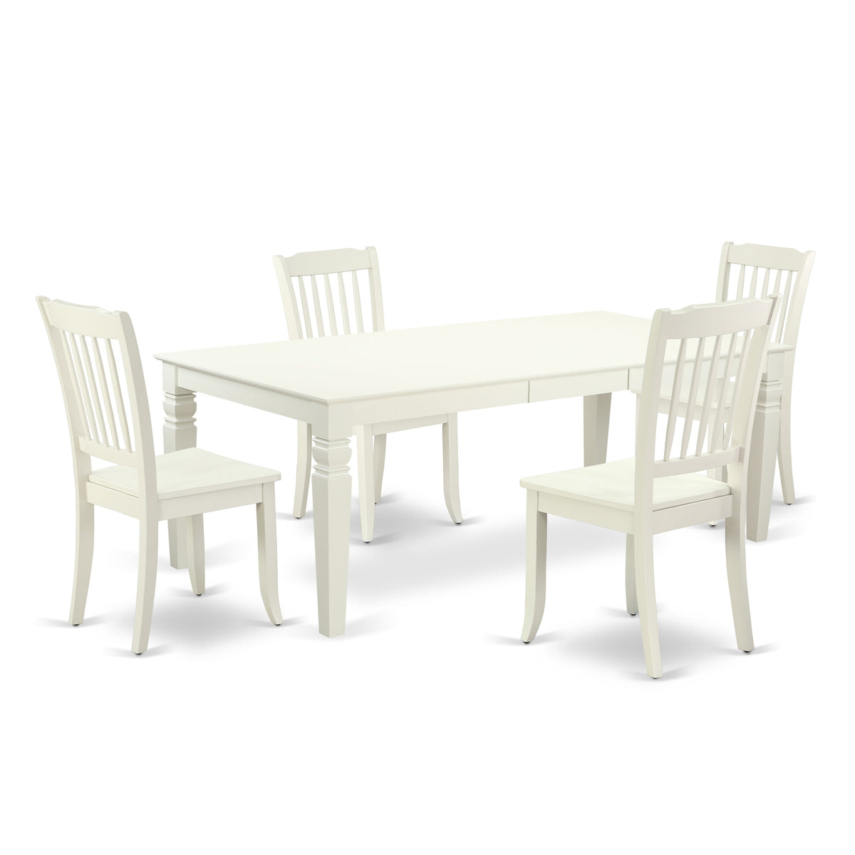 This stunning LGDA5-BRA-1 dining room set is similar to a classic missionary design and adds a sophisticated, modern touch to any kitchen area or dining room. A comfortable and luxurious Linen White color offers any dining area a relaxing and friendly feel with the kitchen table. This wonderful slick Linen White kitchen table makes a really good addition for all kitchen space and corresponds all sorts of dining-room concepts. The eye-catching Danbury dining room chair finished in rich Linen White offers a modern look in your dinette space. These Kitchen dining chairs come with a solid wood seat to fit personal preference and perfect design. The Stylish dining chair features curved front legs. The 7 vertical slats give any dining area a touch of class and sophistication. Made up of hardwood, the chair is stable and offers a sturdy finish. The frame of the chairs are engineered to offer a great amount of comfort to your spine and thus reduce the chances of back pain. The matching color of the chair with the table brings a good contrast in the kitchen area. The standard shape, size and design makes the dining area significantly attractive. This contemporary, budget friendly, durable and comfortable dining set can be good choice if you are looking for a great dining time experience with your family or friends.