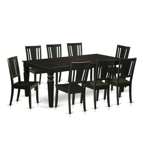LGDU9-CS0-F 9-Piece Rectangular Table Set with Butterfly Leaf and 8 Chairs, 42x84, Elegant Black