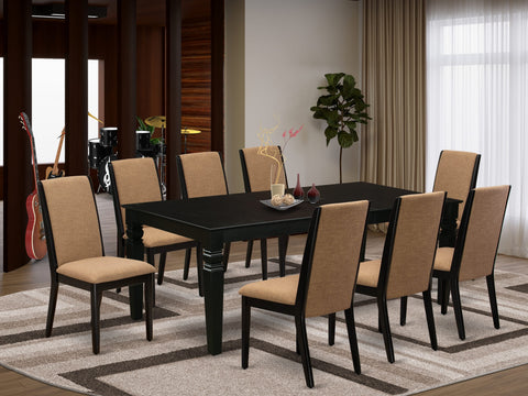 Our dining room set includes 8 wonderful parson dining chairs and an awesome 4 legs small table. The modern kitchen set gives a Black solid wood small table and body and a wonderful Light Sable parson dining room chairs seat and high back that bring elegance to your dining area and enhance the elegance of your wonderful dining area. The good quality of our amazing chairs helps our wonderful customers to get relaxation and feel free when getting their meal. This modern dining table built from good quality rubber wood which can bear the weight of 300 Lbs. Our Dining Chairs have a wooden frame with a luxury seat of good quality foam which is covered with Linen Fabric that offers you relaxation with friends or family. This listing has a premium color of Black finish for living room table and Light Sable finish of parson dining chairs. Our beautiful premium colors improve the beauty of your dining room and offer a high-class appearance to your dining area or dining area. East West furniture usually created from modern furniture along with easy assembling parts. We try to keep our furniture parts innovative as well as simple. Our high-class dining room table set is best for your lovely dining area as well as the kitchen. You can use it for casual home parties. Keep enjoying East West modern furniture!