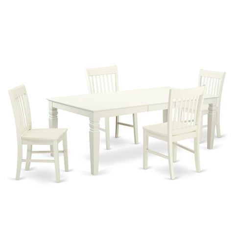LGNO5-EX0-5 Spacious Dining Ensemble with Expanding Table & Chairs, 42x84 in Snowy Finish