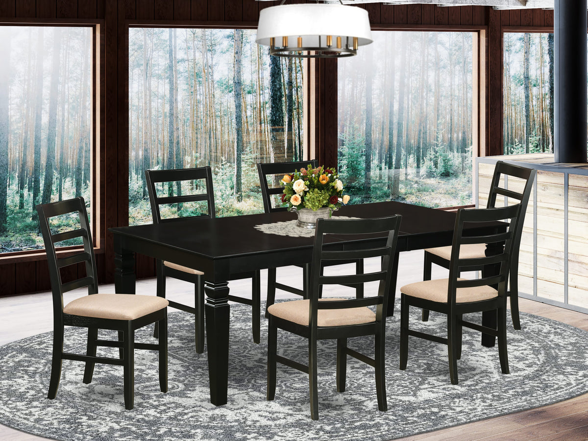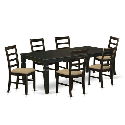 LGPF7-SBN-Q 7-Piece Dining Set with Expandable Table and Linen Chairs, Sleek Black Finish, 42x84 In