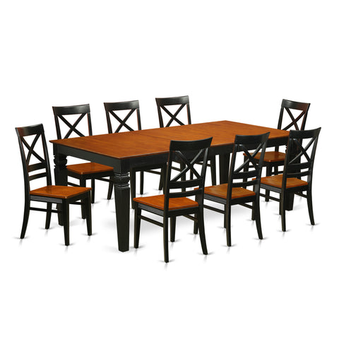 This beautiful dining room set is reminiscent of a classic Missionary style and adds a stylish, modern touch to any kitchen area or dining area. This kind of Nine Piece Dining room table set with one table and Eight dining room chairs. High quality kitchen set which is created from 100% Asian Hardwood. Simply no MDF, veneer, laminate include with our items. The table features an integrated 18 inch self storage extension Leaf which can be stored right beneath the table top. The rectangular kitchen table is finished in a warm, high sheen Black & Cherry that is easy to care for and polish. This table features strong square legs with carved decor and plenty of legroom for individual comfortably. The straight back chairs are ideal for both formal and casual get togethers.
