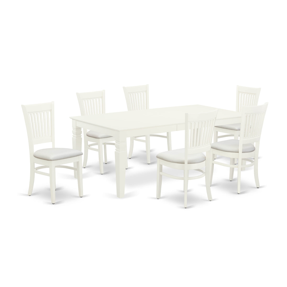 Our small dining table set includes 6 wonderful wooden dining chairs and an amazing 4 legs Rectangular dining table. The dinette set provides a Linen White solid wood breakfast table and fantastic Linen White wooden chairs that will enhance the elegance to your living area. This rectangular kitchen dining table is made from top-quality rubber wood. These dining room chairs have created from top quality woods that can Endurance to 300lbs weight. This wood dinette set is colored with a top-quality Linen White finish. You can clean this kitchen dinette set quickly with any furniture clearance. This kitchen set puts together quickly because of its simple design. You can put together this kitchen table set one place to another simply. The kitchen set is one of the most important pieces of furniture in your house. It not only becomes the place to eat meals, but it's where you end up working on vegetable cut and spending time with family and friends. You can also use it for casual home parties. That's why it's important to find a kitchen dining table set that matches your personality and uses the space wisely. The options are endless, so it's important to pick what works best for you. If you're looking to bring a new look to your kitchen or dining room, this dining set might be the perfect choice. Bring a rustic, classy look to your dining room with this set that seat 6 people around the kitchen table. Just because you have a small area for your breakfast table doesn't mean you have to sacrifice on quality or look. Keep enjoying with East West furniture!