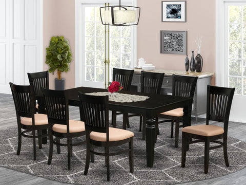 LGVA9-C9G-R Transformable Dining Set Versatile Rectangle Table with 8 Cozy Linen Chairs, 42x84 Inch Elegance